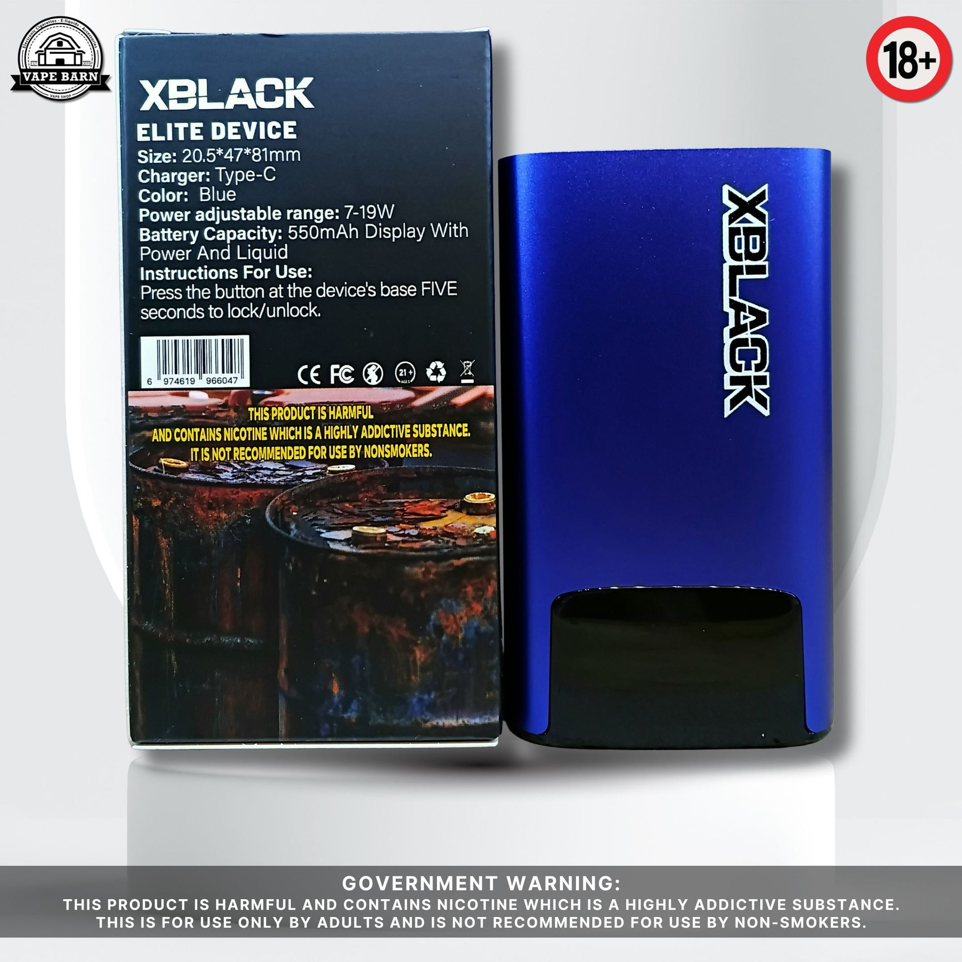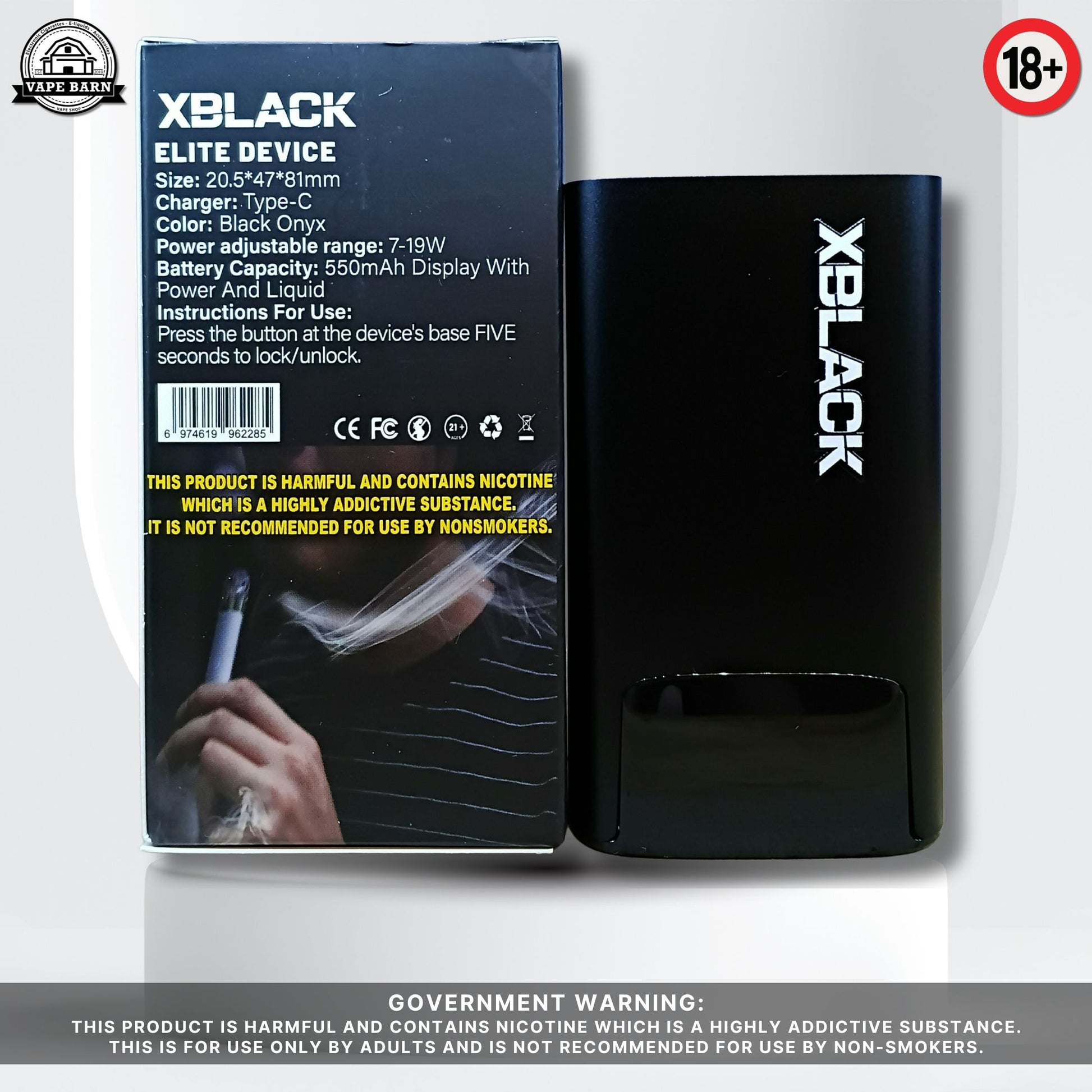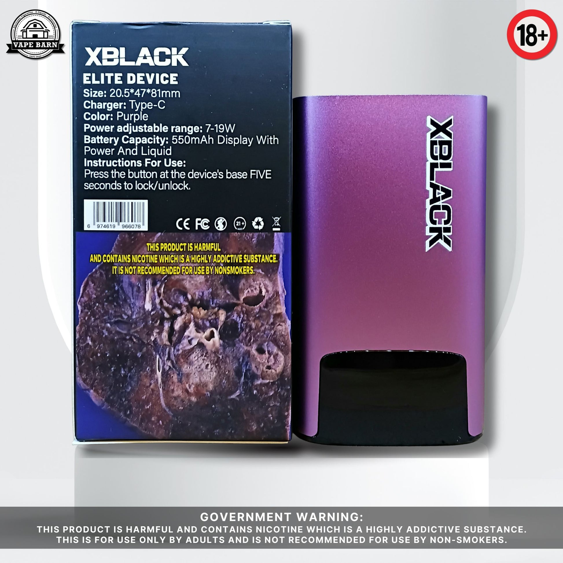 XBLACK ELITE V3 Battery Power Adjustable 7-19W 550mAh with Display Black Elite V2 Compatible